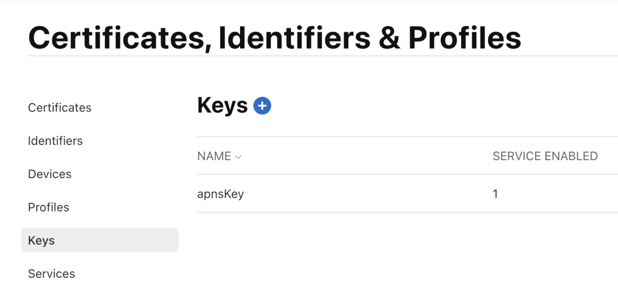 1. 애플 developer사이트에 keys카테고리에서 키를 추가해 줍니다.