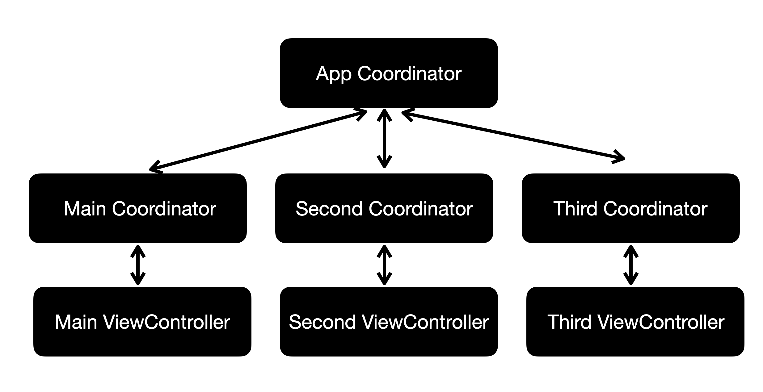 그림처럼 코디네이터가 앱의 흐름과 뷰의 이동을 관리 patent Coordinator는 child Coordinator를 생성하고 child Coordinator는 화면을 전환하는 역할을 가지고 있습니다.